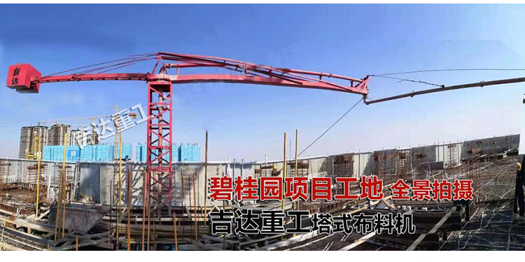 塔式混凝土布料机是混凝土输送泵的配套设备,其功能主要是将混凝土泵送到需要浇筑的建筑物上进行浇筑,是高层建筑物混凝土施工的布料设备。